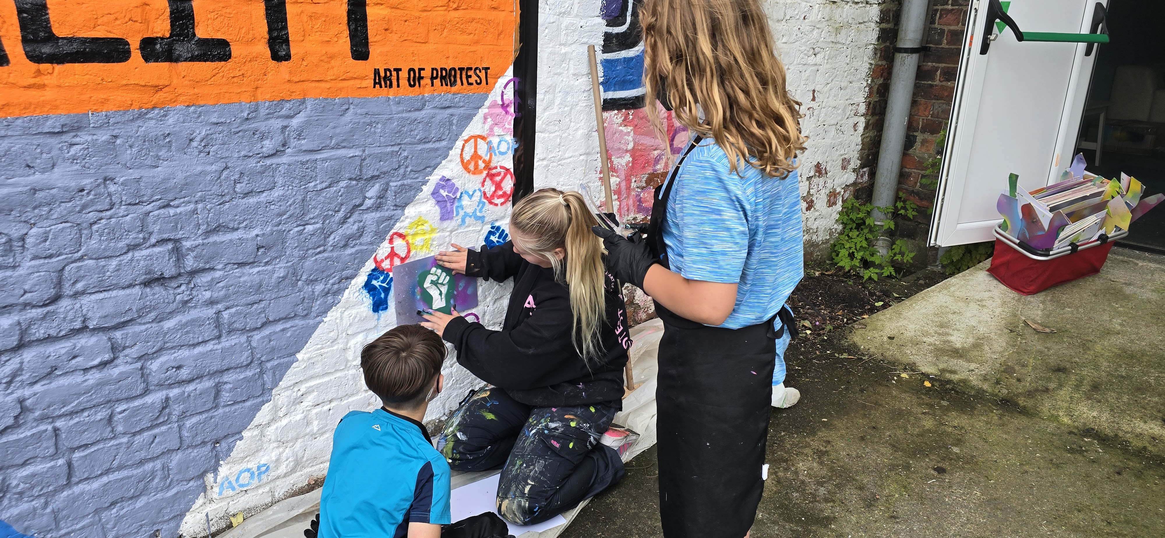 AOP were thrilled to be teaching children and young people about their rights, the history of protest, power in community and the skills to articulate their voice. Teaching young people the technical skills of spray painting, this protest mural is a call for action. What the children were asking for is EQUALITY - a word they chose. Are you ready to listen and more importantly ready to act? See the young people in action here